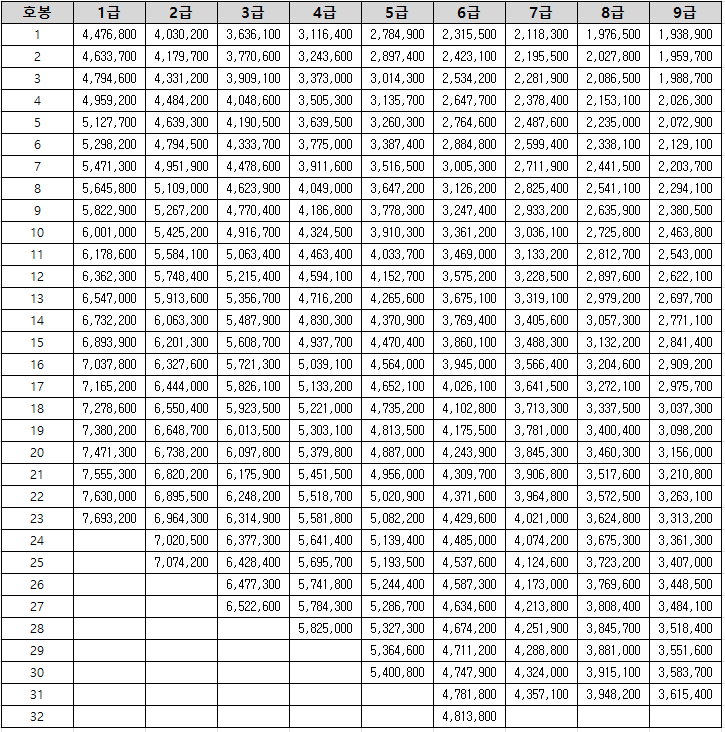 직급별 봉급 비교